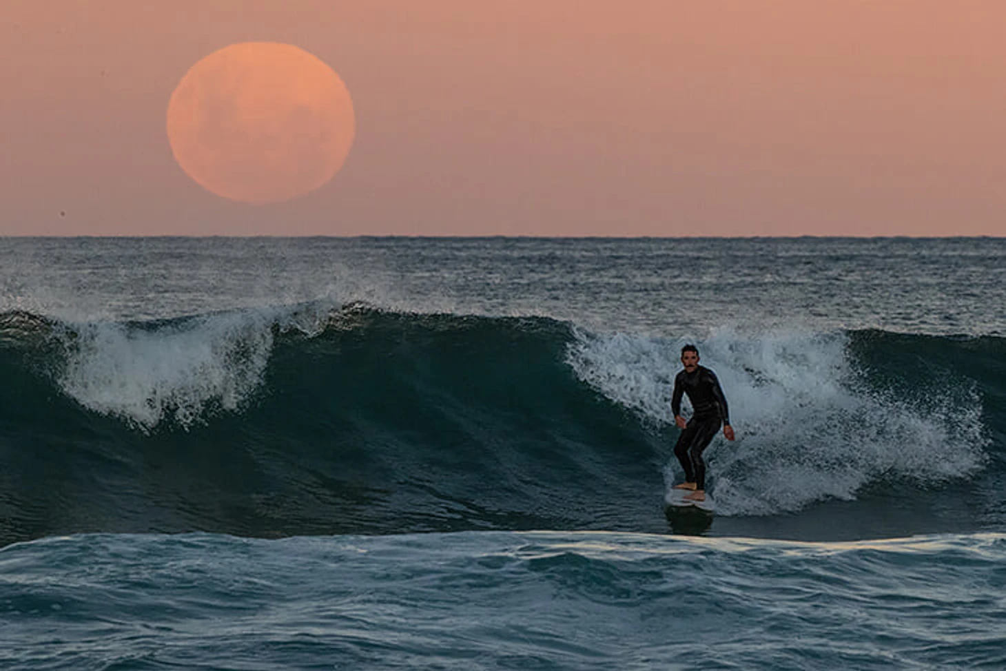 26 мая. Серфер на фоне суперлуния в небе Сиднея. В этом году суперлуние совпало с полным лунным затмением.