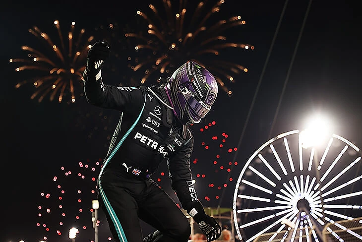 28 марта. Льюис Хэмилтон, который выглядит здесь как торжественно приземлившийся космонавт, первый на Гран-при Бахрейна. Начался новый сезон «Формулы-1».