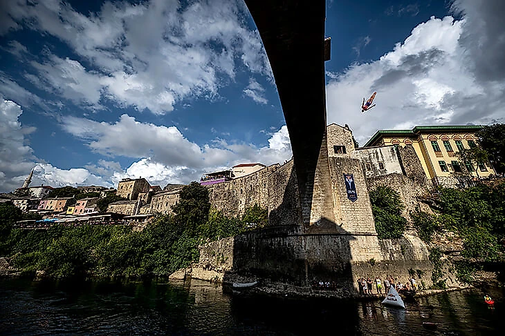 28 августа. Это Мировая серия Red Bull Cliff Diving в Боснии и Герцеговине. Старый мост в Мостаре, откуда прыгают спортсмены, внесен в список Всемирного наследия ЮНЕСКО.