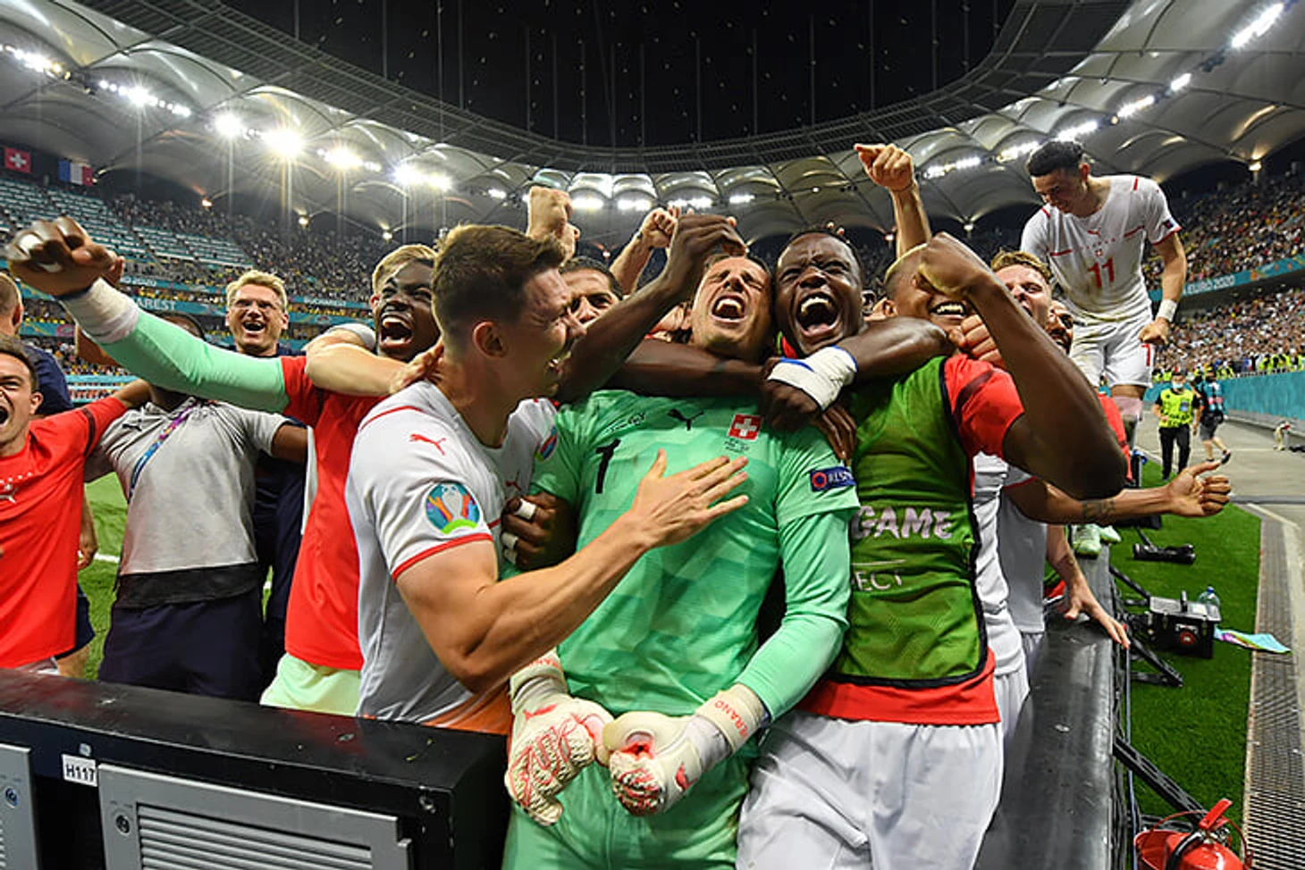28 июня. Ян Зоммер и сборная Швейцарии счастливы, они только что выбили чемпионов мира.