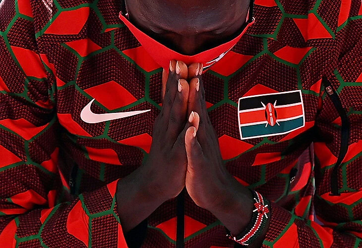 5 августа. Это Эммануэль Корир, олимпийский чемпион из Кении, чьи руки, лицо, маска и форма слились в один узор.