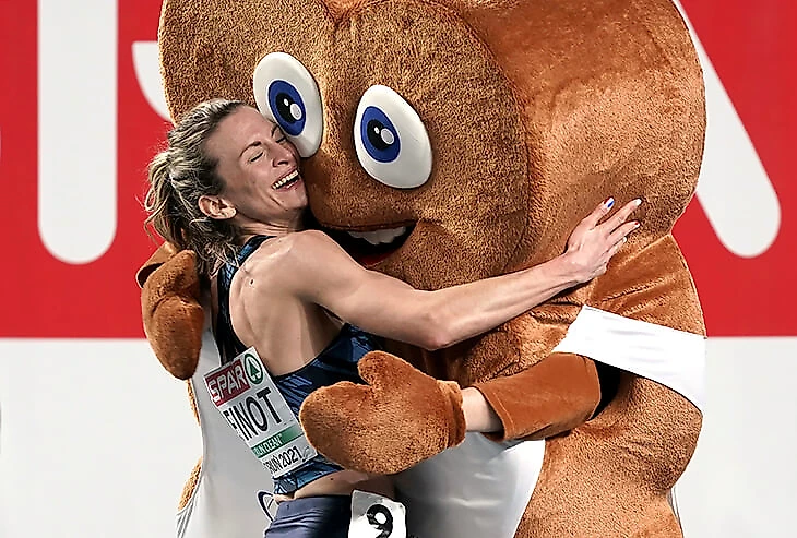 5 марта. Француженка Элис Фино обнимается с пряником на чемпионате Европы-2021 по легкой атлетике в помещении.