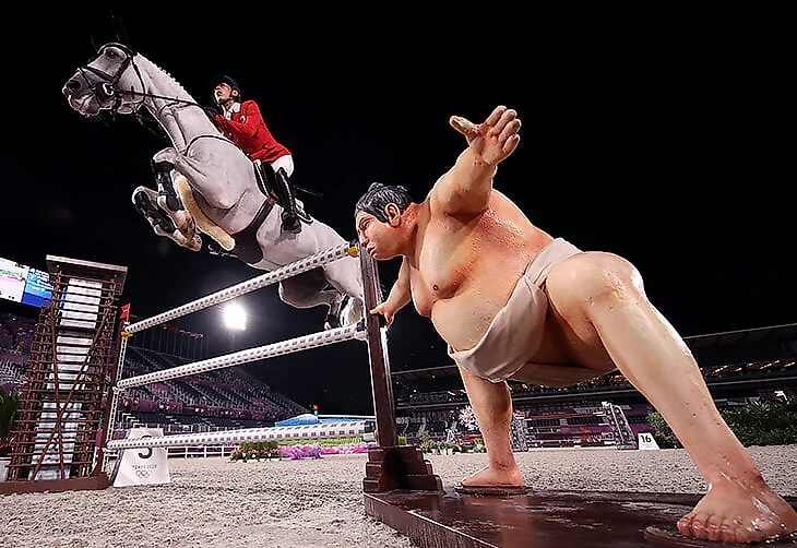 4 августа. Фигуру сумоиста на соревнованиях по конкуру снимали все фотографы. Нравится этот ракурс.