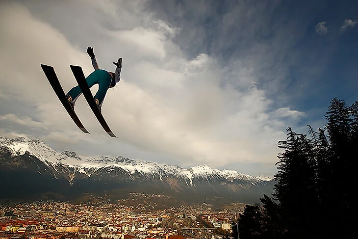 2 января. Небо, горы, лес, город, летящий человек. Такая красота – на Турне четырех трамплинов в Инсбруке.