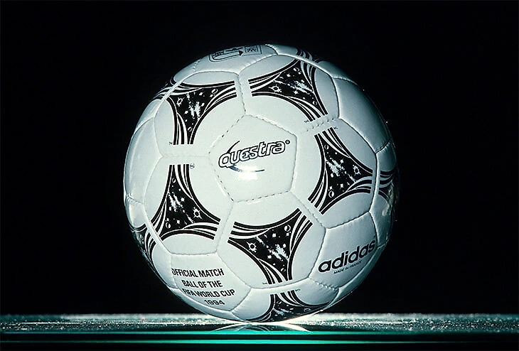 1994, Questra, США. Чемпионат мира в Италии получился самым скудным на голы за всю историю турниров. Исправить ситуацию должен был новый мяч от adidas – Questra (от «the quest for the stars» – поиск звезд). Дизайн и сам мяч был пропитан темой инноваций и космических полетов.