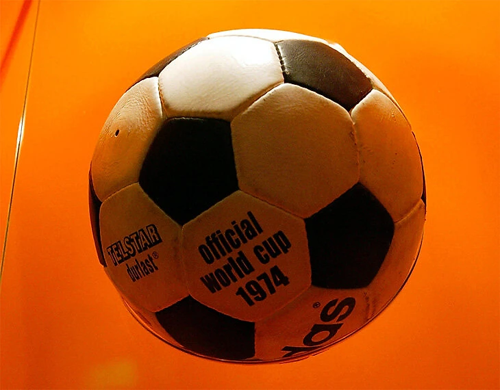 1974, Telstar Durlast, ФРГ. Это был слегка модифицированный мяч Telstar. К названию добавили часть Durlast – так назывался материал, который покрывал мяч толстым слоем и делал его блестящим и водонепроницаемым.