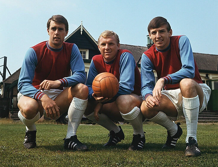 Трио чемпионов мира-1966 из «Вест Хэма»: автор золотого хет-трика Джеффри Херст, капитан англичан Бобби Мур и так же забивший в финале Мартин Питерс.