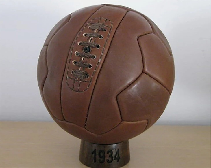 1934, Federale 102, Италия. Мяч Federale 102 шили в Риме. Шнуровали его не кожаными шнурками (как было раньше), а хлопковыми. Бить по нему головой было чуть безопаснее.