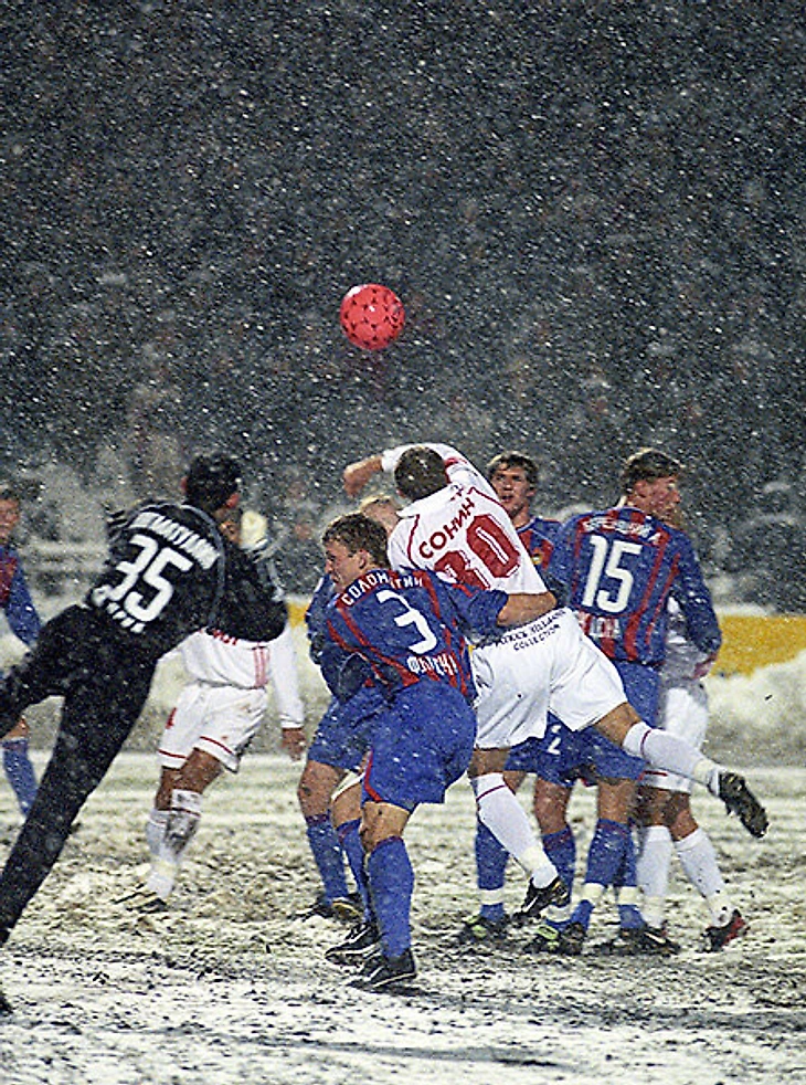 А помните то самое снежное дерби? ЦСКА – «Спартак» с грузовиками на поле, кривыми линиями и «порвем козлов» Романцева