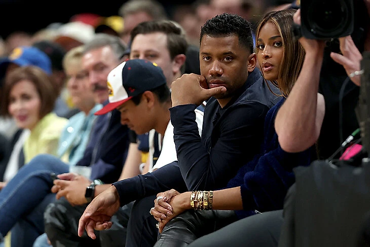 Квотербек «Бронкос» Расселл Уилсон и певица Сиара на одном из денверских матчей с «Голден Стэйт».