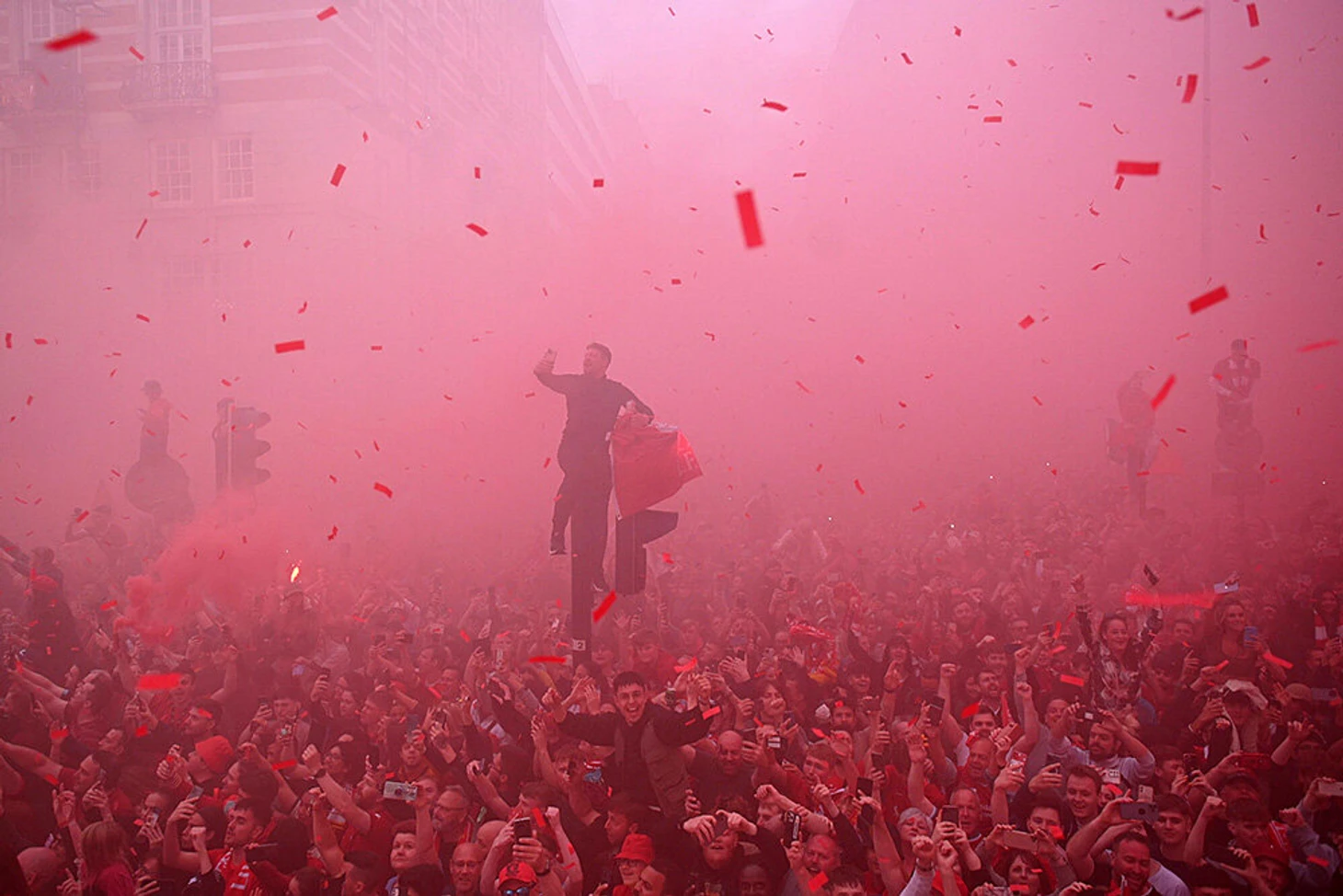 29 мая. Все-таки главные герои майской подборки – болельщики. Это парад «Ливерпуля» в честь двух английских кубков на следующий день после проигранного финала Лиги чемпионов.