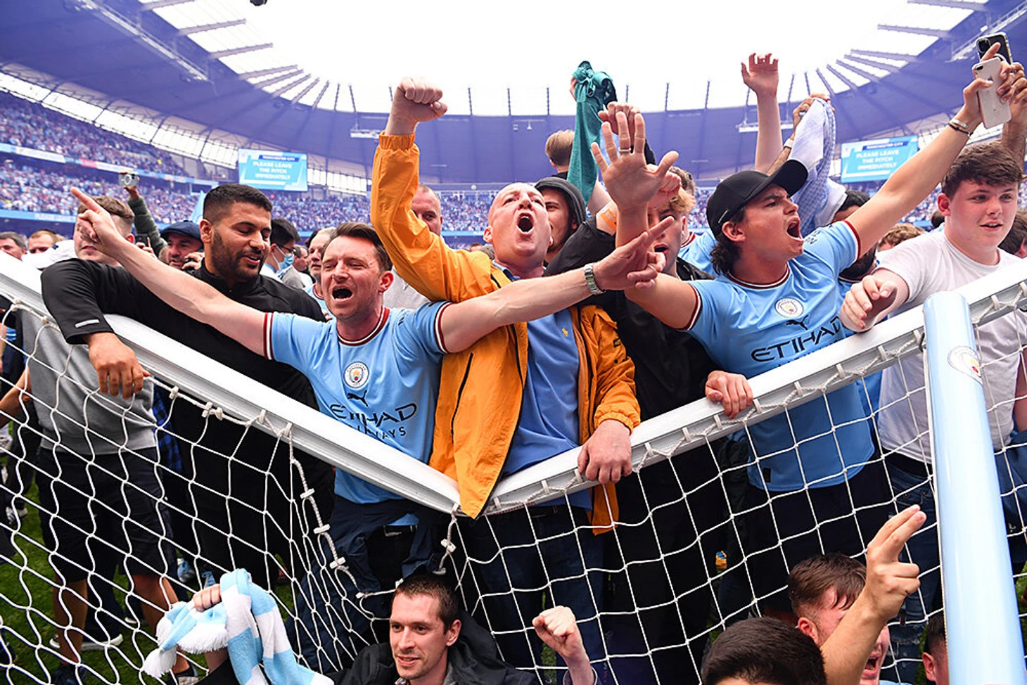22 мая. У болельщиков «Манчестер Сити» тоже был повод для бурной радости и даже сломанной перекладины. За 15 минут до этого фото их команда переломила решающую игру за чемпионство.