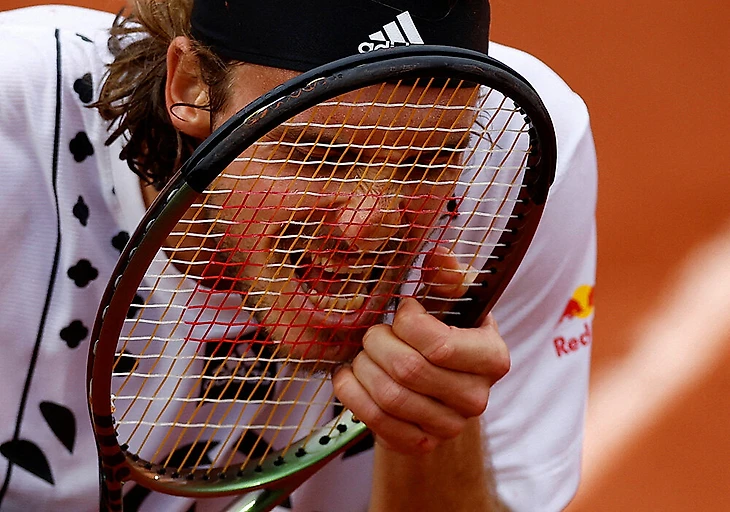 26 мая. Эмоции Стефаноса Циципаса сквозь струны ракетки. Грек вообще в этом сезоне любит поговорить с ракеткой.