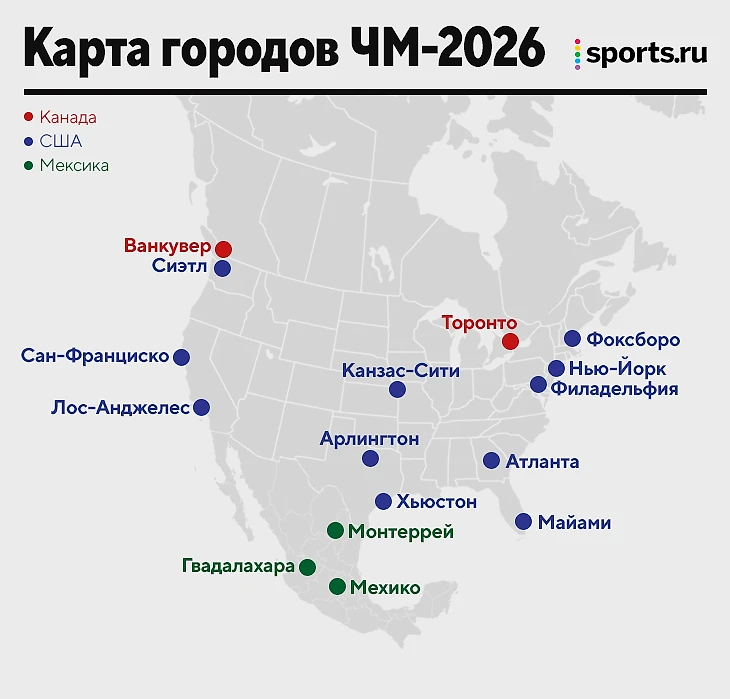 Помните особенности ЧМ-2026? Там всех участников поделят на 16 групп, по три в каждой – поэтому и стадионов выбрали столько же. На каждом будет играть одна из групп, всех по такому принципу по Северной Америке и раскидают.
