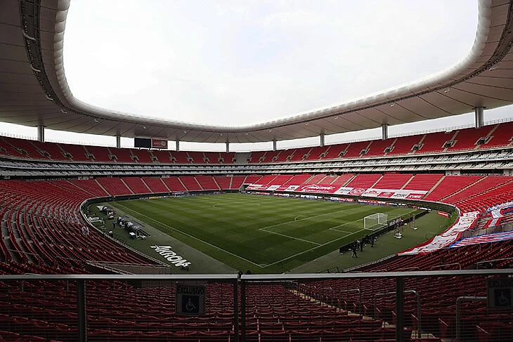 Переезжаем в Мексику. Арена, предназначенная для мексиканской «Гвадлахары», была построена в 2010-м. По задумке архитекторов, снаружи стадион напоминает вулкан, его вместимость – почти 50 тысяч.