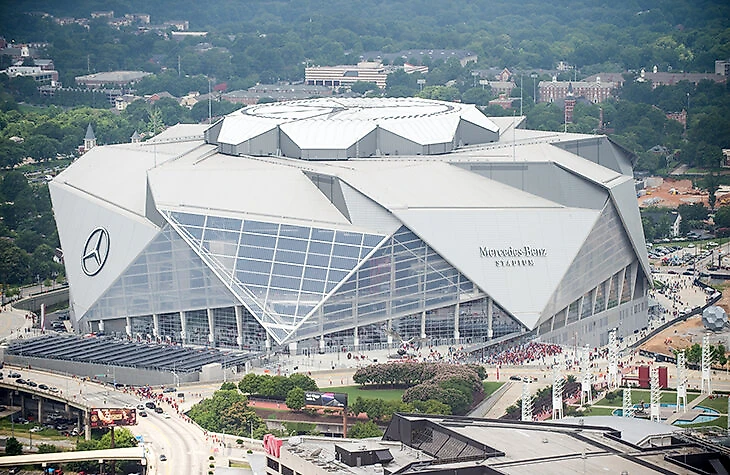 Один из самых эффектных стадионов мира построили в 2017-м для команды МЛС «Атланта Юнайтед» и клуба НФЛ «Атланта Фэлконс». Подробно про арену мы писали пять лет назад – приглашаем на экскурсию.