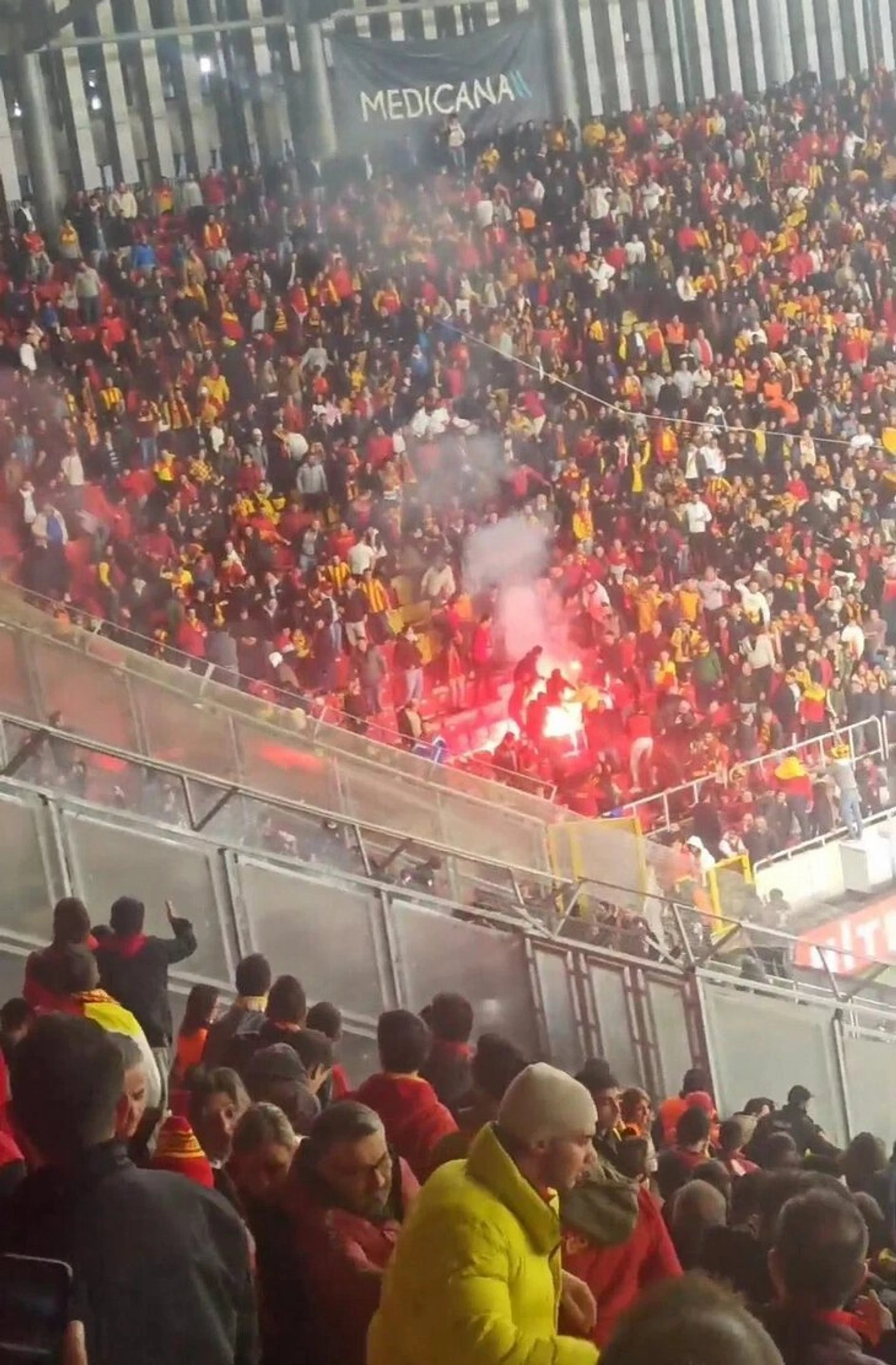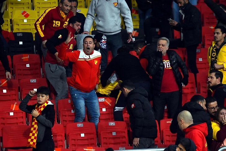 Но от беспорядков за пределами стадиона это не уберегло. В разных районах Измира произошли драки, применялись колюще-режущие орудия. В частности, есть видео, где человек получил несколько ножевых ранений в спину, пока садился в автомобиль, пытаясь скрыться от атаковавших его болельщиков другой команды.