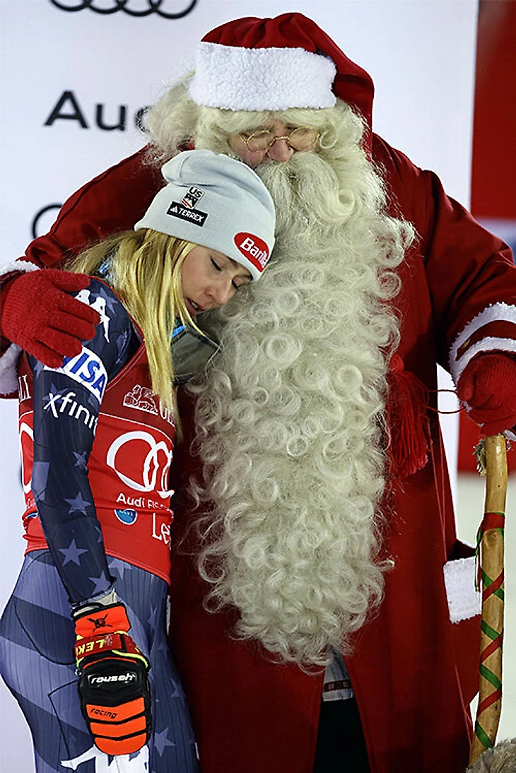 20 ноября. Объятия Микаэлы Шиффрин и Санта Клауса на этапе Кубка мира в Финляндии. Выглядят они грустновато, но Шиффрин победила.