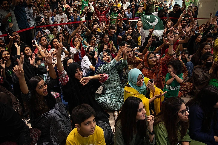 13 ноября. Толпа в Пакистане болеет за сборную в финале ЧМ по крикету. Смотрите, сколько здесь женщин и детей. В конце они расстроятся, когда Пакистан уступит Англии.