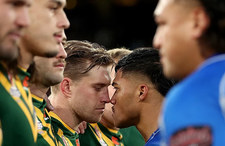 19 ноября. Самоанец Брайан То’о пытается напугать австралийца Камерон Мюнстер перед финалом ЧМ по регбилигу. Не удалось – чемпионом уверенно стала Австралия.