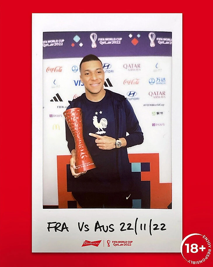 Перед погружением в ретро – пара нюансов. Киллиан Мбаппе, Яссин Буну, Калиду Кулибали и некоторые другие игроки держали трофей задом наперед, чтобы скрыть надпись спонсора премии – Budweiser. L’Equipe писал, что Мбаппе не хочет рекламировать марку алкогольного напитка. Также француз принципиально не рекламирует фастфуд и азартные игры. Фотографии протестующих игроков можно отличить по белому фону стены со спонсорами, где тоже отсутствует Budweiser. Некоторые фотографии с перевернутым трофеем так и не были опубликованы в соцсетях ФИФА, но их можно найти в фотоагентстве Getty Images, где они выложены без фирменного Polaroid-стиля.