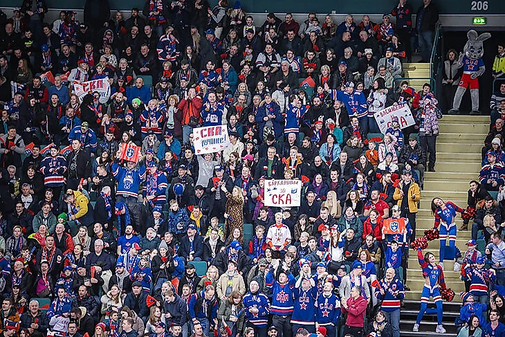 Ледовый дворец Санкт-Петербурга официально рассчитан на 12 300 зрителей, что не помешало ему на одном из матчей плей-офф собрать 12 412 болельщиков. И, судя по фотографиям СКА, вряд ли это ошибка в подсчетах.