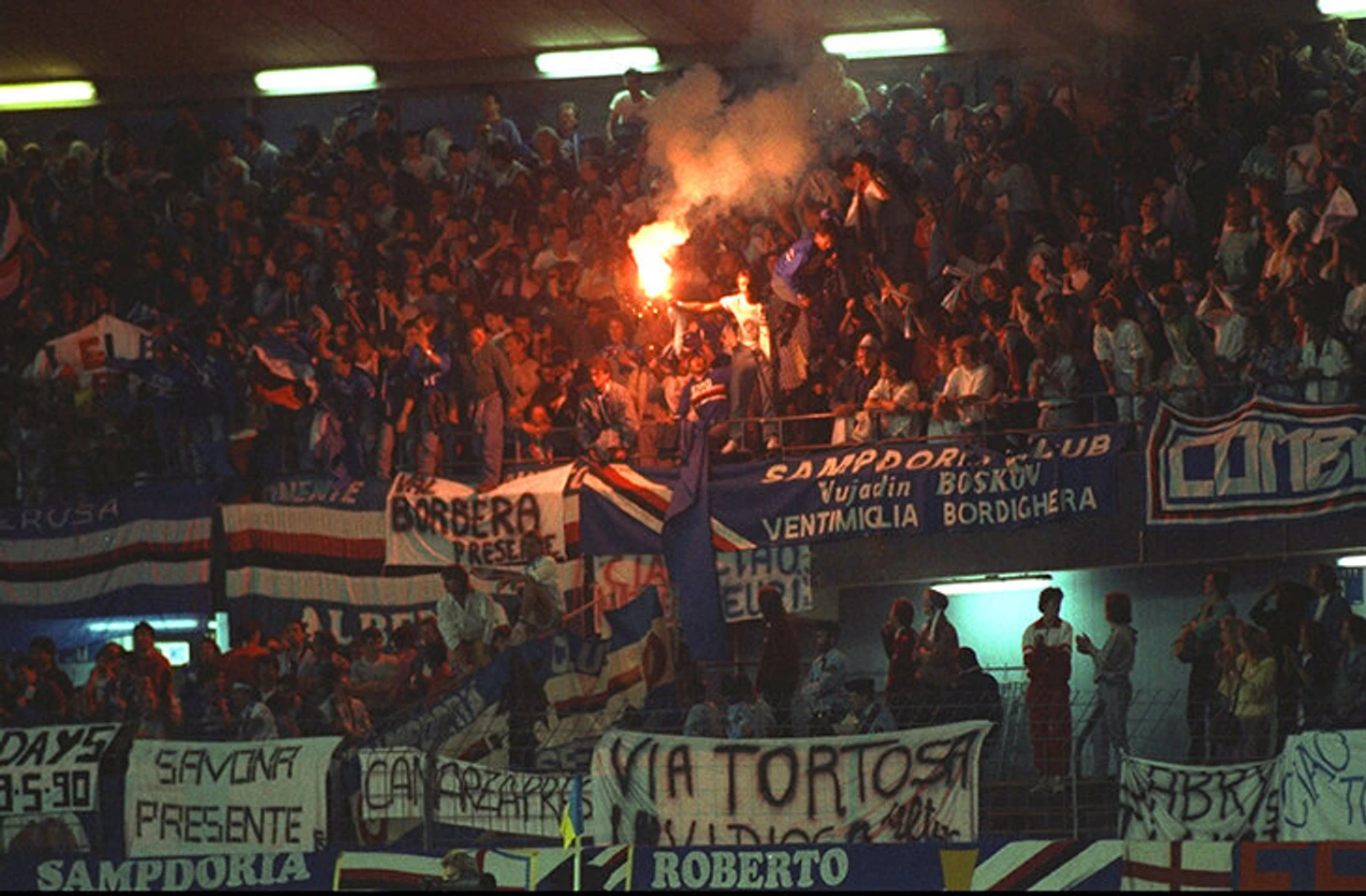 «Сампдория» начала с сухих побед над «Бранном»: дома по голу забили Виалли и Манчини, в гостях – Сречко Катанец. В 1/8 финала поздний гостевой мяч Манчини сравнял счет в Дортмунде, а дома «Боруссию» выбил дубль Виалли – 2:0 после 1:1. Никто из них не забил в четвертьфинале «Грассхопперу», но отличились другие – «Сампдория» победила 2:0 и 2:1.