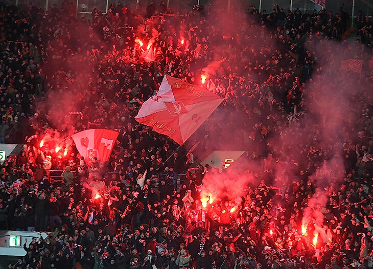 В марте 2012-го игроки тоже уворачивались от файеров. На трибунах было очень горячо.