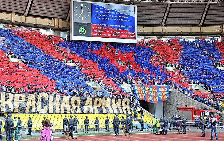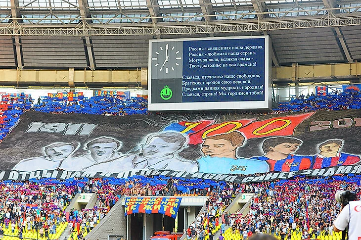 Тогда ЦСКА праздновал 100-летие – и ультрас красно-синих подготовили огромное полотно, приуроченное к событию.