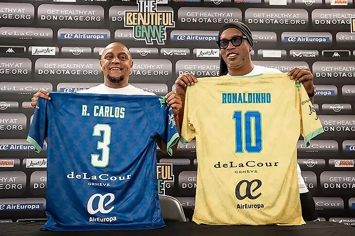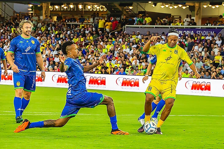США скоро станет центром актуального футбола, а пока разогревается на матчах легенд: в Орландо (штат Флорида) провели «Прекрасную игру». Другой она быть и не могла, учитывая составы, сыграли команды Роналдиньо и Роберто Карлоса.