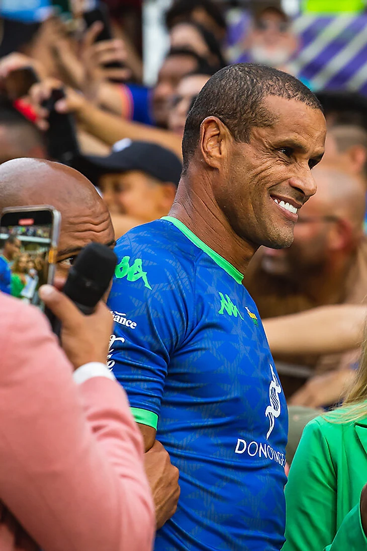 Форвард «Реала» зажег 4:2 в пользу команды Роналдиньо, а в перерыве сменил футболку и установил окончательные 4:3. Когда праздновал дубль, он успел наделать селфи и раздать автографы.