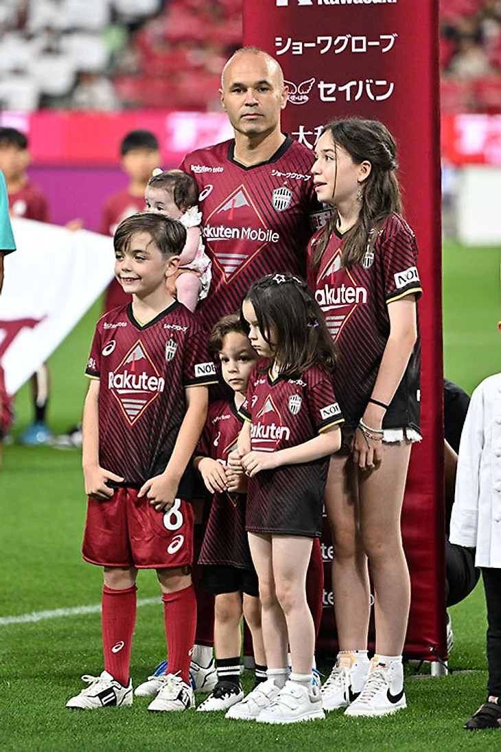 Андрес вышел на поле со своими детьми: сыновьями Ромео и Паоло, дочками Валерией и Сиеной, а еще с 6-месячной малышкой Олимпией.