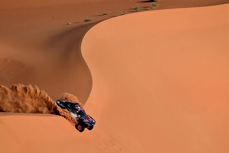 А еще «Дакар» – это длинные глиняные дороги и русла пересохших рек. Покрытие в них абсолютно непредсказуемое, и ехать с такой скоростью и следами может только «мистер Дакар» Стефан Петерансель. В этом году пилот «Ауди» повторил рекорд Ари Ватанена по победам на зачетных отрезках!