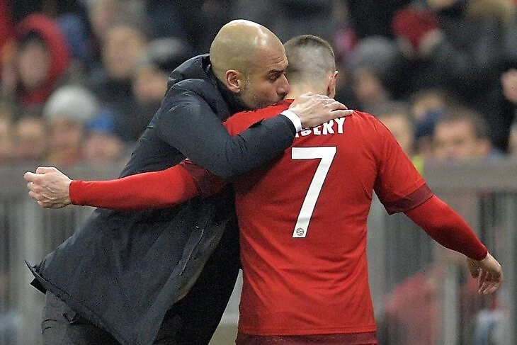 Пеп любит не только на расстоянии. Так целовал в шею вечного Франка Рибери.