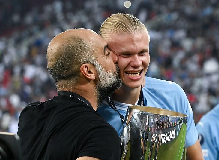 Холанд тоже получал поцелуй от любимого тренера. «Эрлинг – исключительный игрок. Думаю, что он амбициозен и хочет играть лучше. К тому же он идеальный человек, отличный парень», – говорил Пеп.