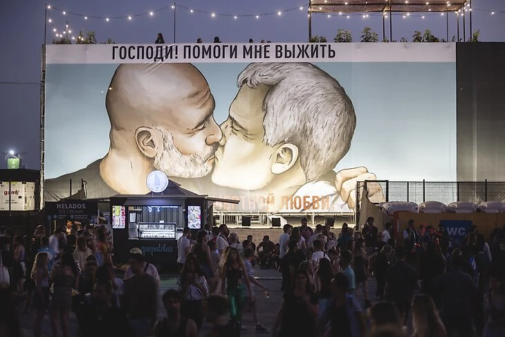 На музыкальном фестивале в Барселоне в 2022-м всех поразил мурал с поцелуем Гвардиолы и Моуринью. Это, разумеется, отсылка к культовому граффити, где изображен поцелуй политиков Леонида Брежнева и Эриха Хонеккера. На мурале с Моуринью и Гвардиолой есть надпись на русском, повторяющая слова на граффити в Берлине: «Господи! Помоги мне выжить среди этой смертной любви».
