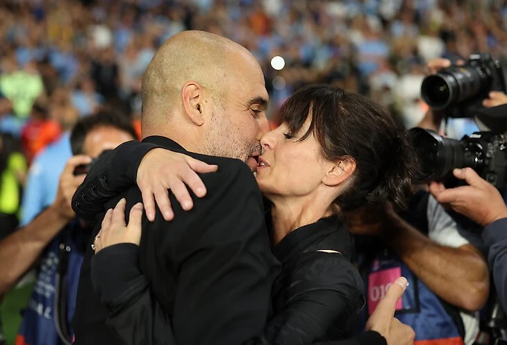 А это частичка отношений Гвардиолы с женой Кристиной Серрой – страстный поцелуй после победы в ЛЧ. Пеп любит ее с 18 лет.