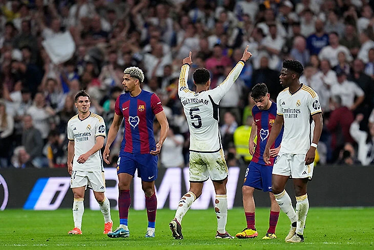 Феноменальный сезон Джуда Беллингема в «Реале» дополнился очередным суперматчем – и еще одним победным голом в ворота «Барселоны»!