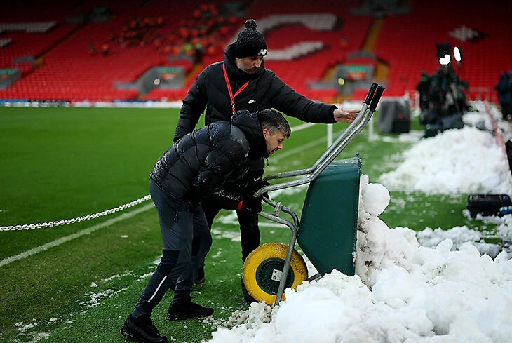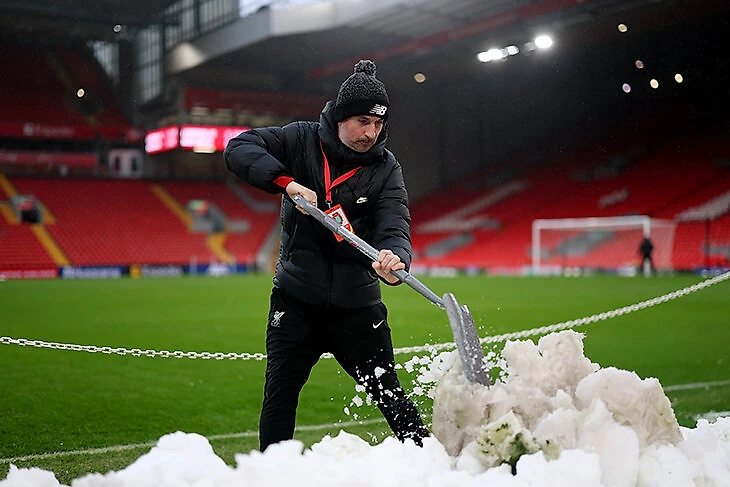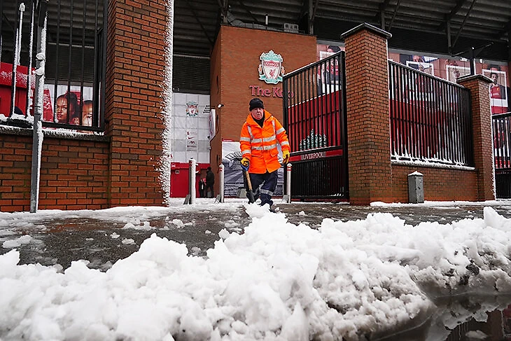 Матч «Ливерпуля» и «Манчестер Юнайтед» на «Энфилде» был под угрозой до последнего: с самого утра воскресенья местные службы решали, стоит ли проводить матч. Причем переживали не столько из-за поля и вообще стадиона, беспокоились за болельщиков «МЮ» и их дорогу туда-обратно.