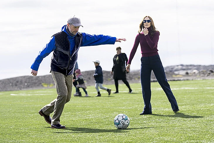 Футбол там любят, вот король Фредерик X и королева Мария играют в футбол в гренладнском городе Кекертарсуак.