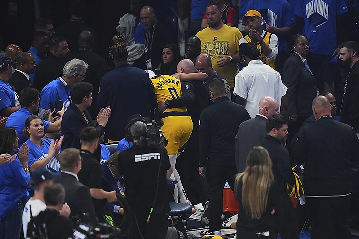 Но правая нога Тайриза Халибертона, символа всех сюрпризов «Индианы» в этом плей-офф, не выдержала.