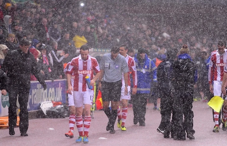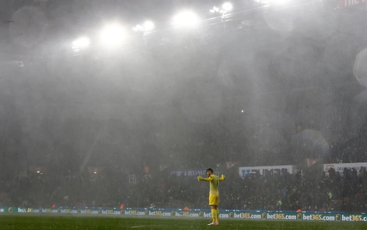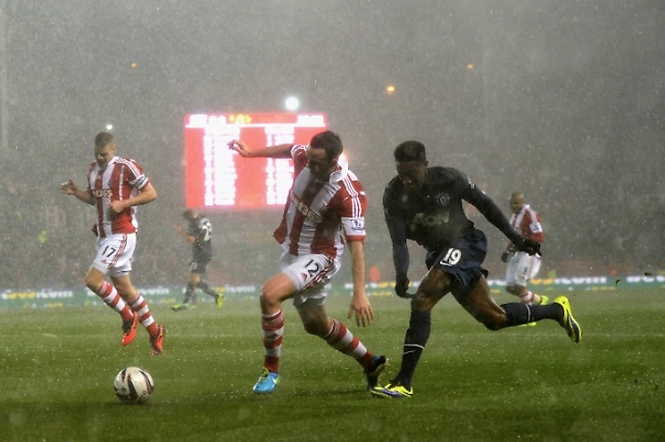 Вечером в среду в Стоке «Манчестер Юнайтед» играл с хозяевами четвертьфинал Кубка лиги. На поле обрушились ливень и град.