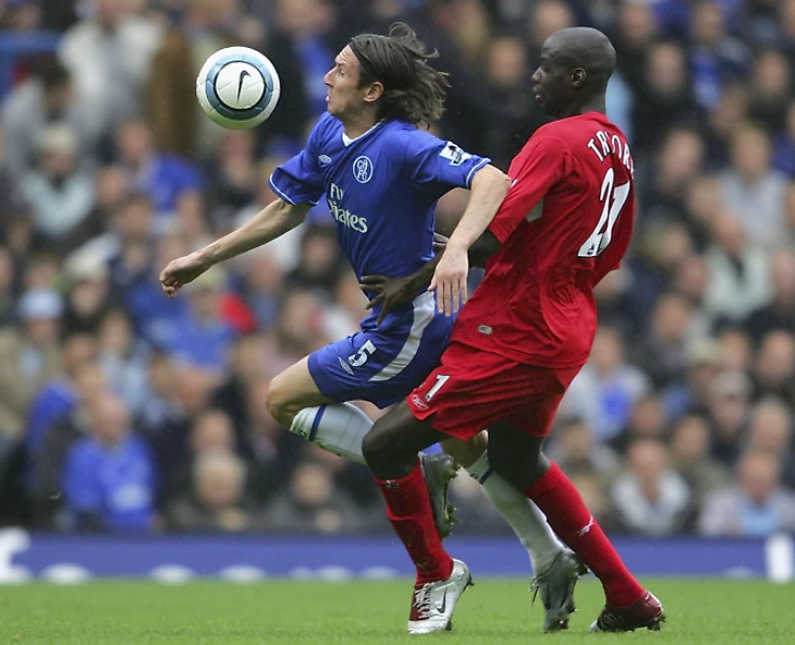 Роман Абрамович очень хотел, чтобы в «Челси» заиграл русский футболист. Алексей Смертин честно пытался. Справа – легенда «Ливерпуля» Джими Траоре.