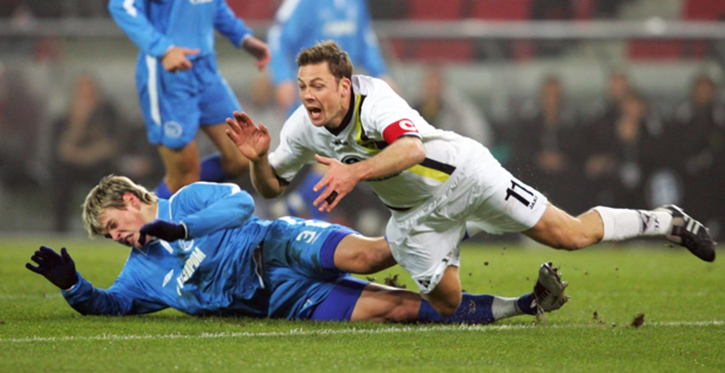 Валерий Есипов (справа) пытается спасти тонущий «Ротор», который вовремя покинул Евгений Алдонин (слева). В конце года важный клуб российских 90-х вылетит из премьер-лиги и превратится в руины.