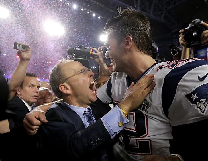 А квотербек «Пэтриотс» Том Брэди ликует, не обращая внимание ни на кого. Это его победа!
