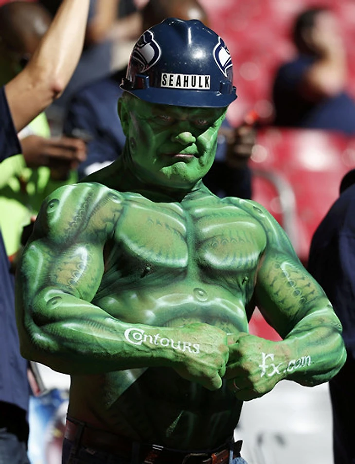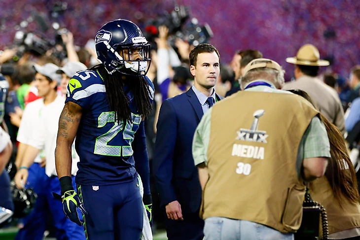 Печаль всегда фотогеничнее. Достаточно взглянуть в глаза Ричарда Шермана (№25), которые не скрывают разочарования под маской.