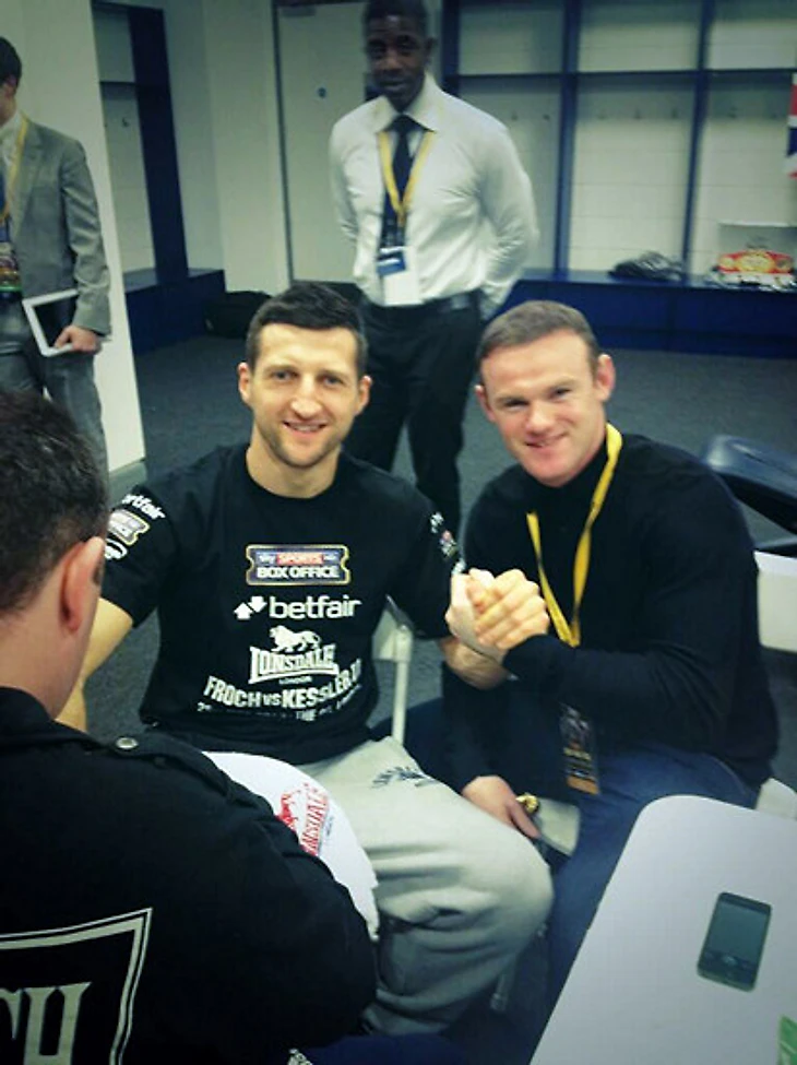 А вот Руни с другим британским боксером – Карлом Фрочем. На фото, кстати, раздевалка «Уэмбли».