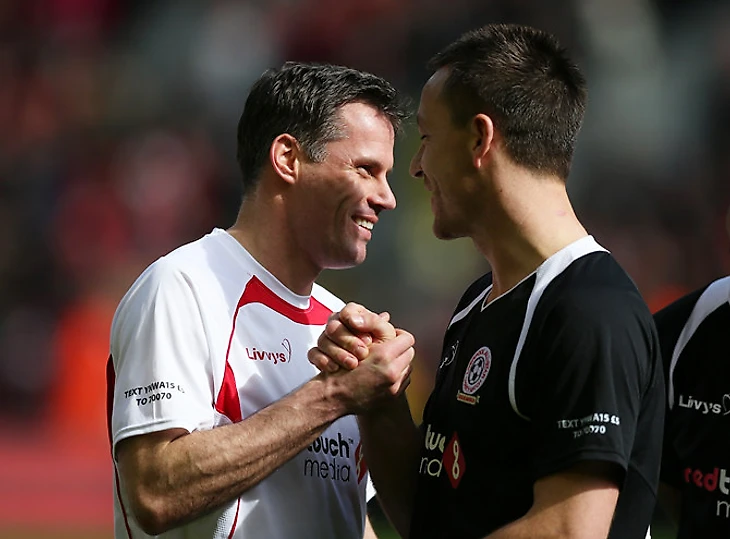 Фоторепортаж о благотворительном матче Стивена Джеррарда и Джейми Каррагера, который собрал многих звезд как прошлого, так и настоящего.