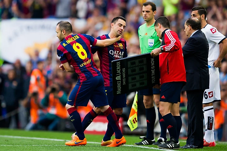 86-я минута матча. Хави под овации меняет Андрес Иньеста.
