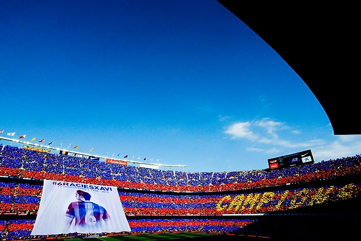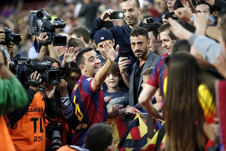 Болельщики приготовили к матчу огромный баннер: «Спасибо, Хави, 17 сезонов 1998-2015».